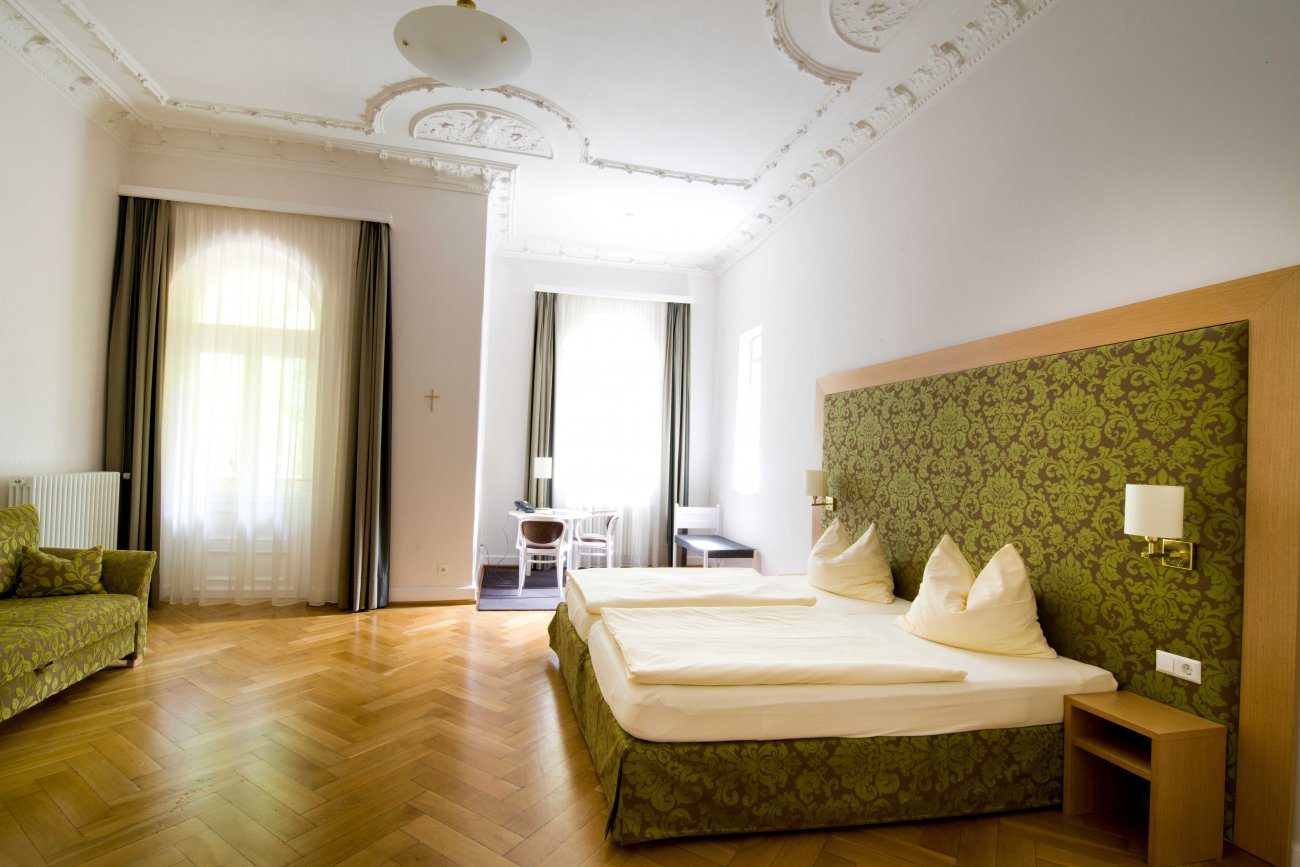 Im Gebäude eines herrschaftlichen Kurhotels aus dem 19. Jahrhundert im Stil des Historismus übernachten Sie in einem geschichtsträchtigen Ambiente und finden verwinkelte Terrassen, ruhige Salons oder die einzigartige Hauskapelle um sich der Ruhe hinzugeben.